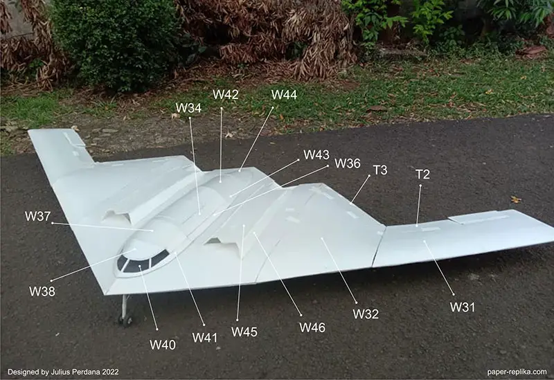 I have a request from one of you on my Berkik 3 flying wing video comment, it says to try adding landing gear on it, so this video is an answer to it, but instead using Berkik 3, I use B-2 Spirit model. This RC model plane also inspired by latest Freewing B-2 Spirit model and I enlarge it a bit to 2500mm. I always thought an RC B-2 Spirit is just an RC flying wing with landing gear, maybe just like a walking in the park, easy.